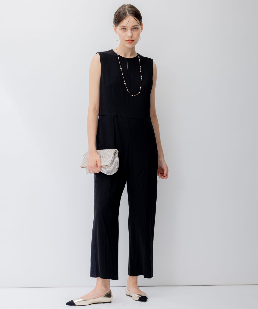 下画像は、両サイドに施したサテンの側章がさりげなく華やかな「23区」【APPLAUDIR】クリアジョーゼット オールインワンです。