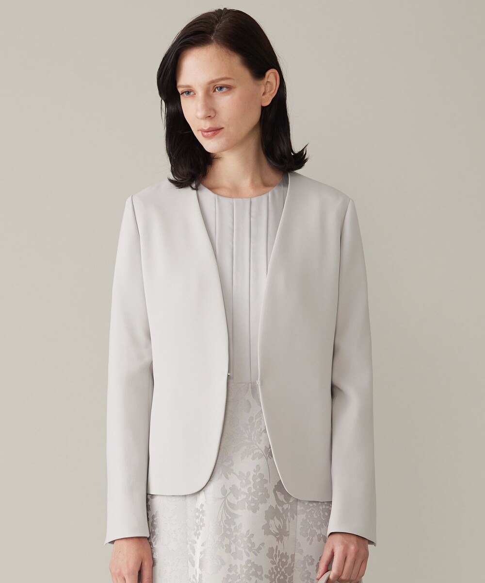 下画像は、シルクのような控えめな光沢が程よい華やかさを感じられる「自由区」【洗える】グログランパフスリーブ ジャケットです。