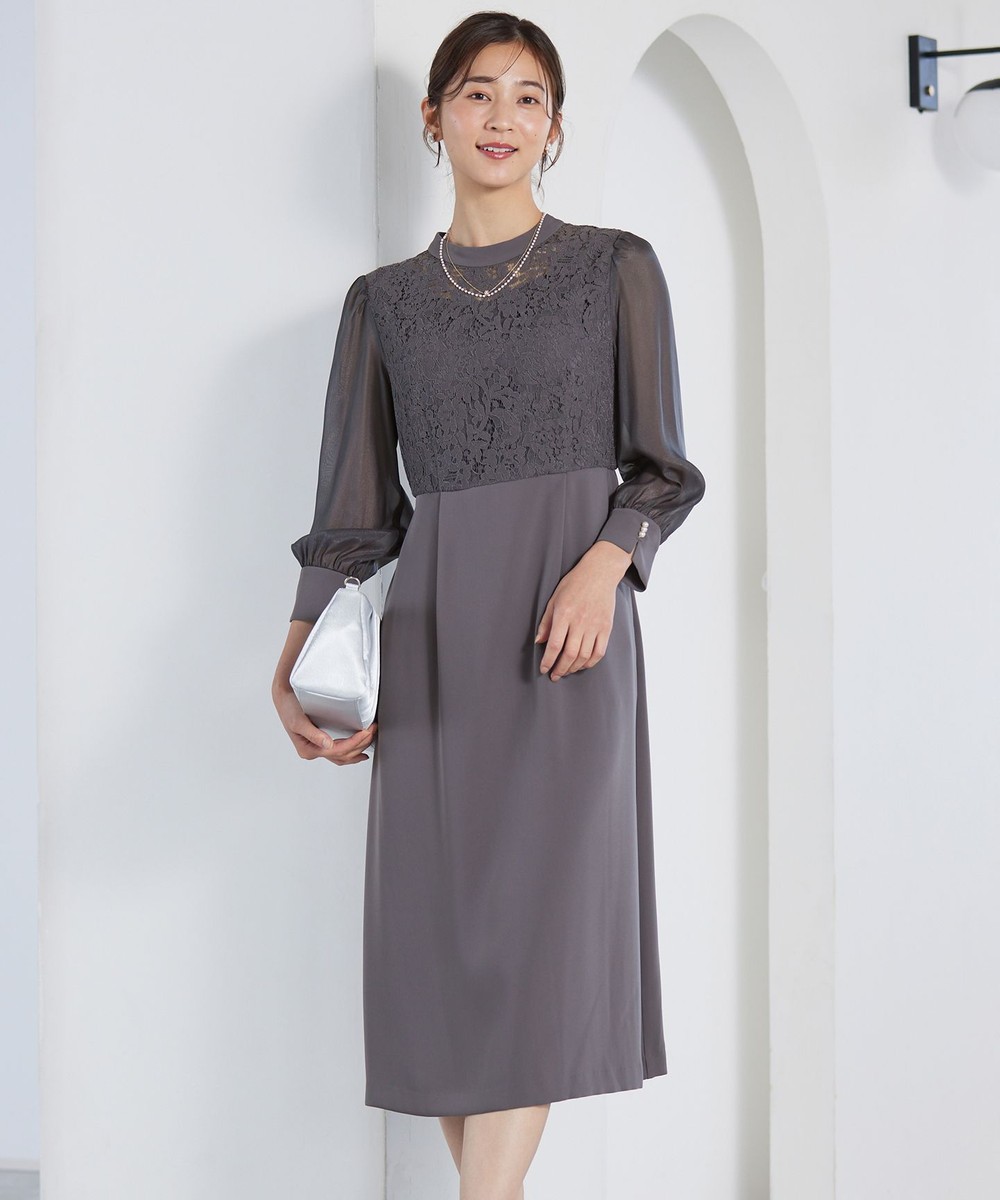 下画像は、レースやシャイニーシフォンの異素材コンビで上品な華やかさをプラスする「any SiS」【洗える】Nobleコンビ ドレスです。ドレス丈2/Mサイズ相当で112.0㎝です