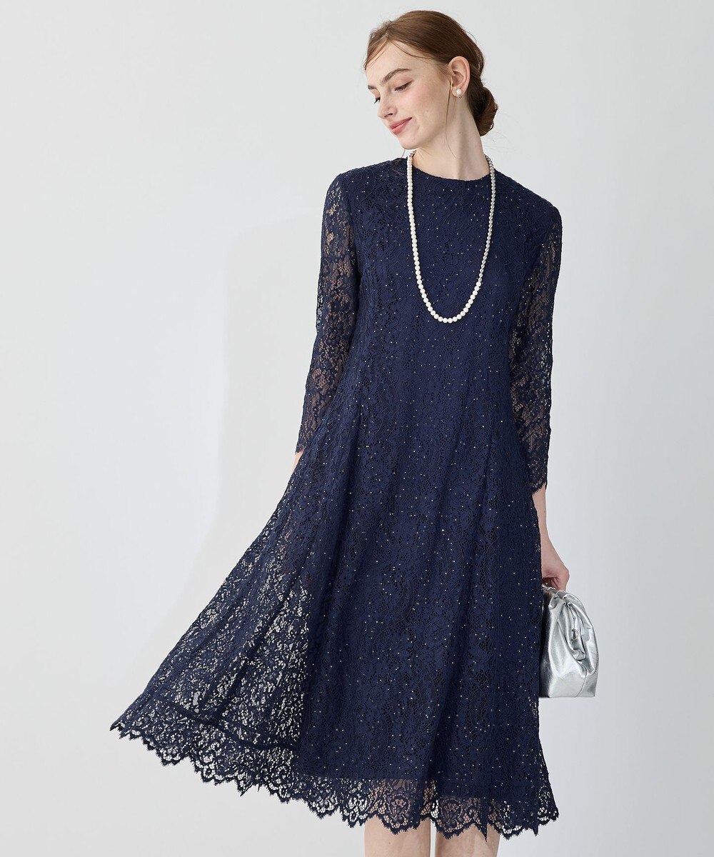 下画像は、繊細レースで品よく華やぐ「any SiS」【洗える】 ドットチュールレース ドレスです。ドレス丈02/Mサイズ相当で116.0㎝です