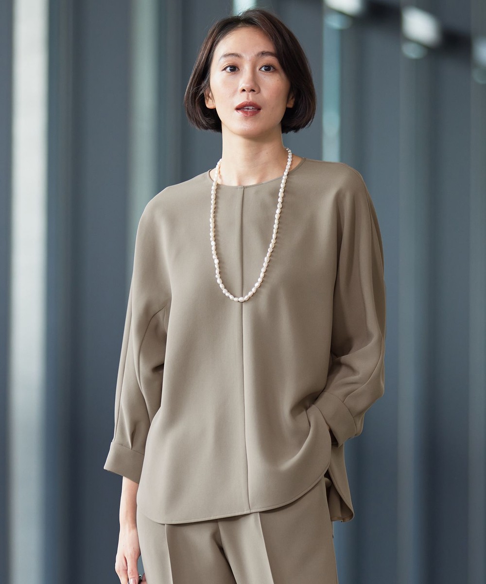 下画像は、「自由区」【セットアップ対応・洗える】トリアセダブルクロス ブラウスです。