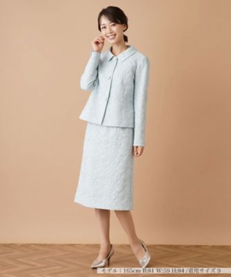 下画像は、国内桐生産地のジャカード素材を使用した「Leilian (Women)/レリアン」ジャカードセレモニースーツ【セレモニー】です。スカート丈11号で66.5㎝です。