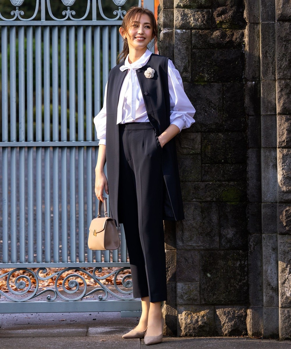 下画像は、ワイド過ぎないシルエットがエレガントな「23区」【セットアップ対応】トリアセダブルジョーゼット フルレングス パンツです。下画像のジャケットとセットでお召しいただけます。
