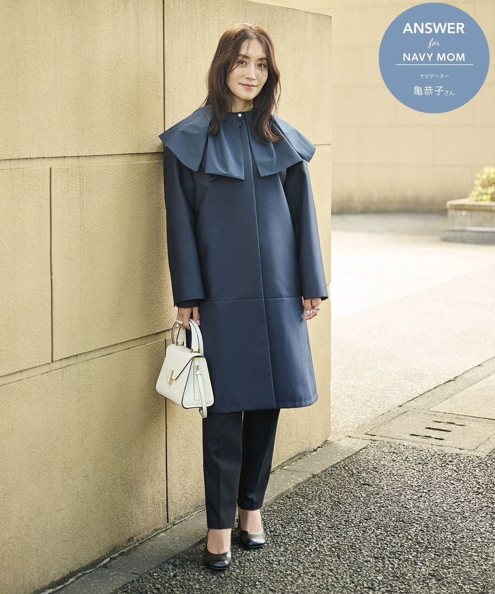 下画像は、「メアリーココ」ユマコシノ コラボ テーラードカラーコート です。素材はポリエステル100%で、撥水加工が施されています。![]()