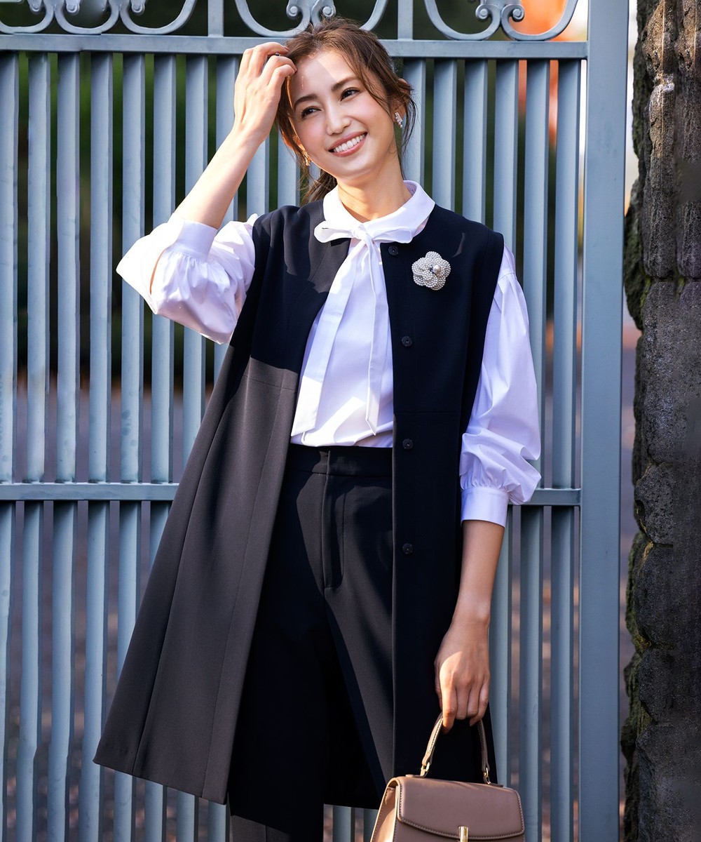 下画像は、「組曲」パフィシャーティング ブラウスです。上画像のジレとコーディネートしていただけます。
