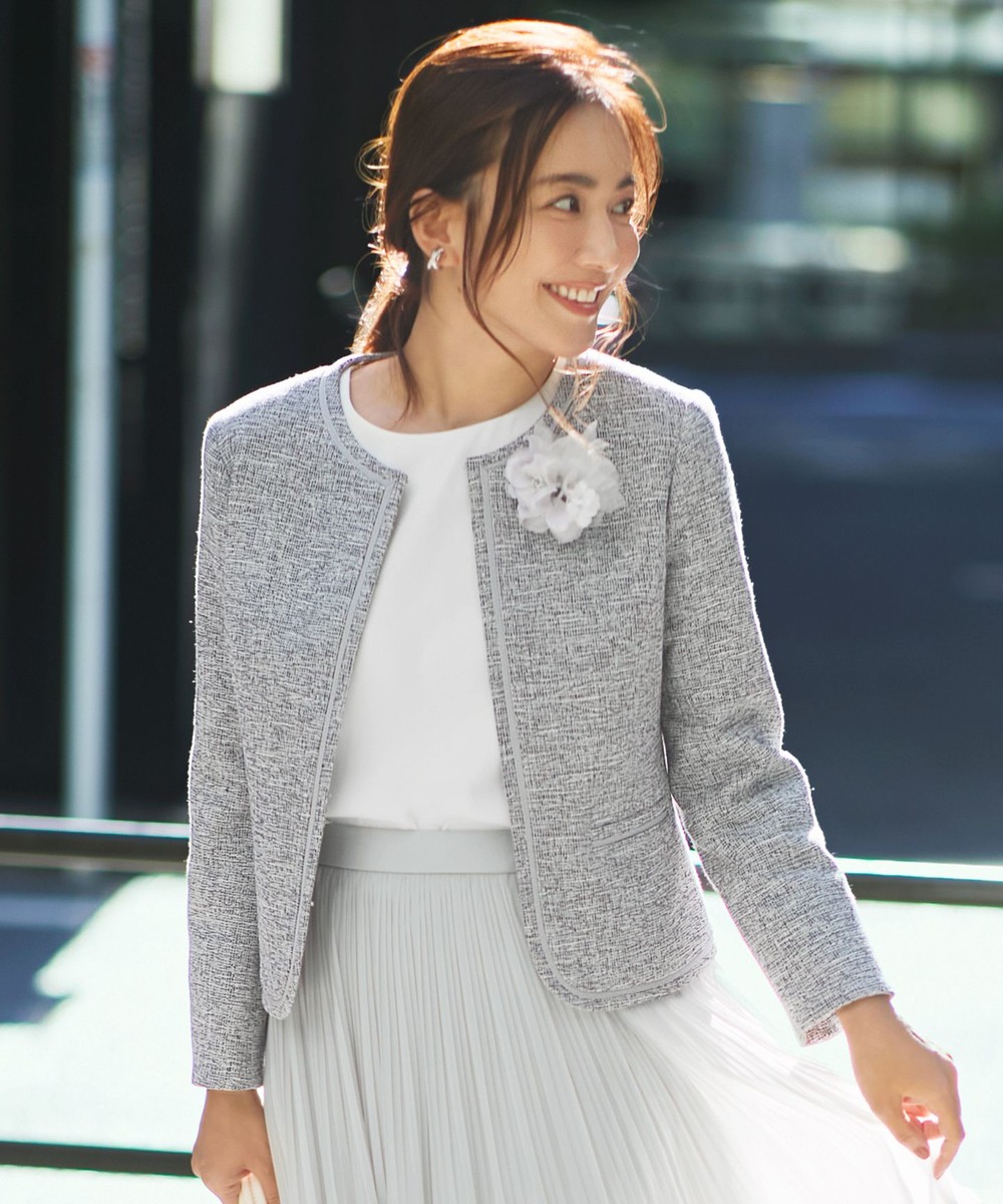 下画像は、オケージョン後の出番も多い「23区」【VERYコラボ 】ファンシーツイード ジャケットです。下画像のワンピースとコーディネートしていただけます。