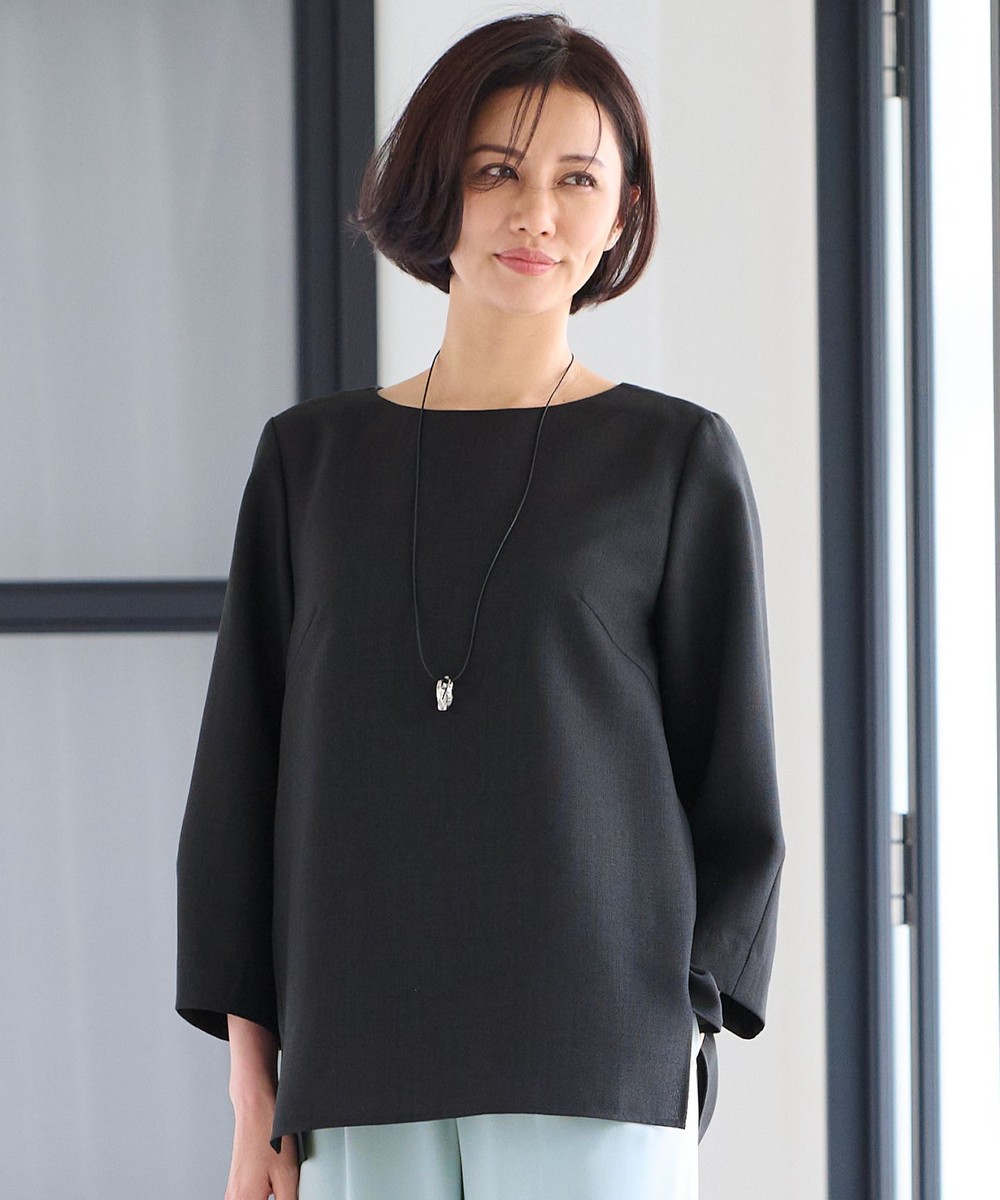 下画像は、「自由区」【セットアップ対応・洗える】ハニカムクロス ブラウスです。上画像のパンツとセットでお召しいただけます。