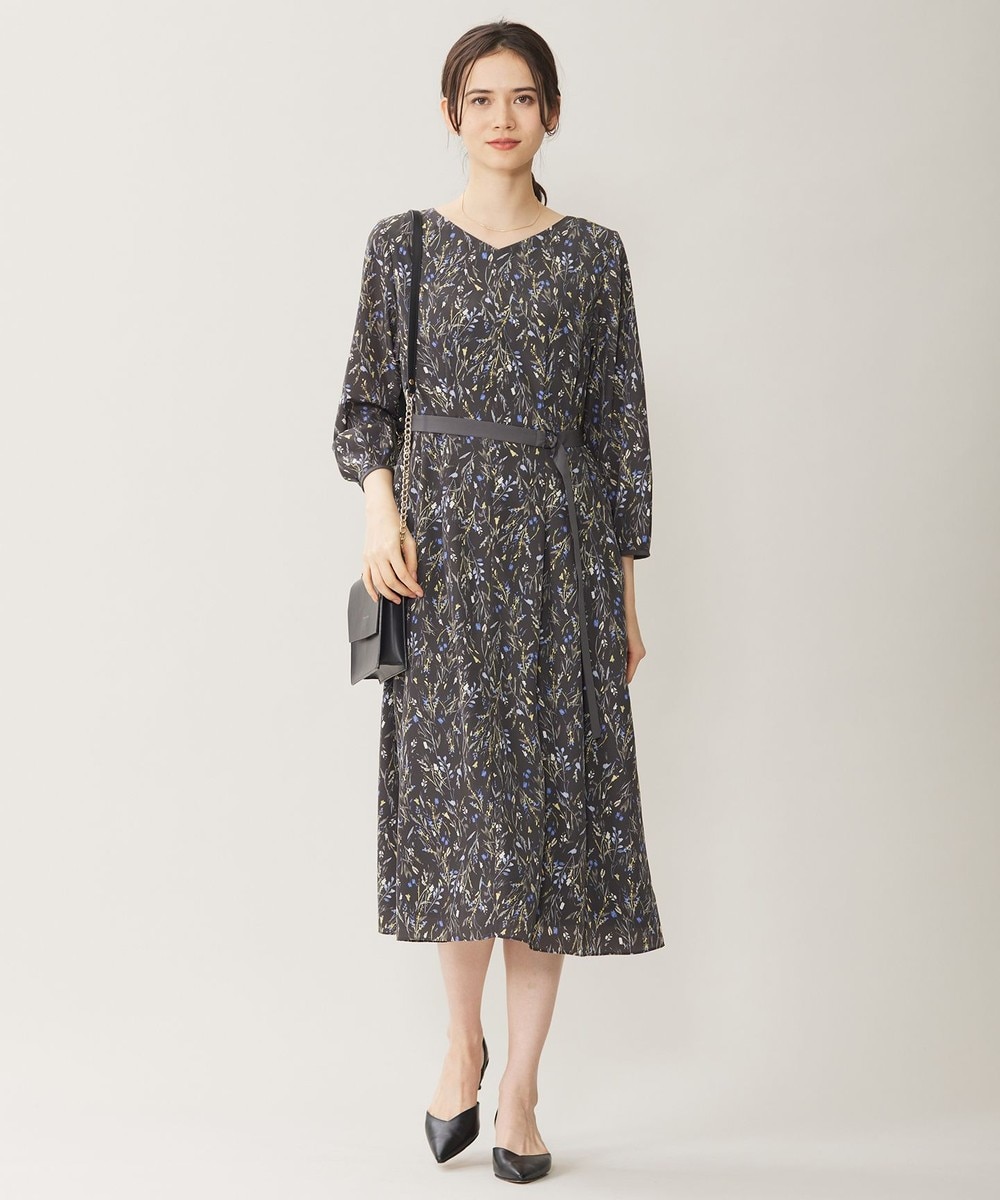 下画像は、花柄のプリントが華やかな「自由区」【洗える】ウォーターカラーフラワープリント ワンピースです(ワンピース丈38/Mサイズ相当で114.0㎝です)。