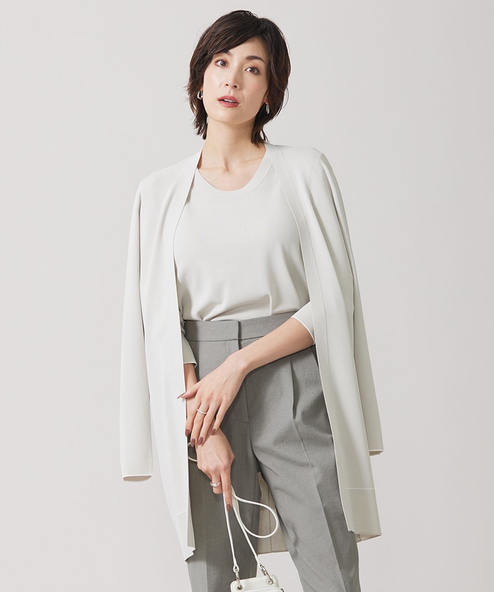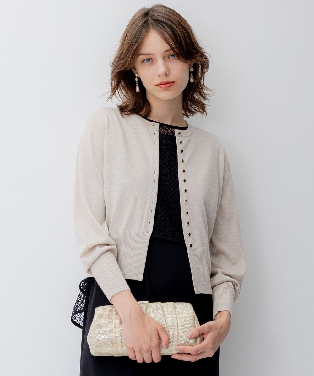 下画像は、「23区」【APPLAUDIR】コンパクト ラメカーディガンです。上画像のようなフォーマル仕様のドレスもカーディガンを合わせて頂くと、友人やご主人と出かけるホテルのディナーや同窓会など幅広いシーンでお召しいただけます。