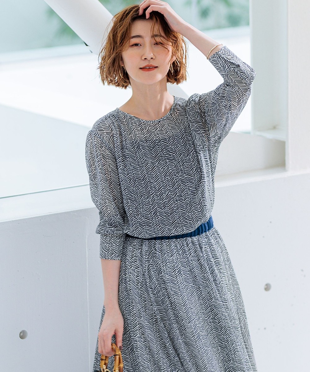 ワンピースの装いはそのまま一枚でもお召しいただけますが、カーディガンやジャケットを合わせるときちんと感が出ます。