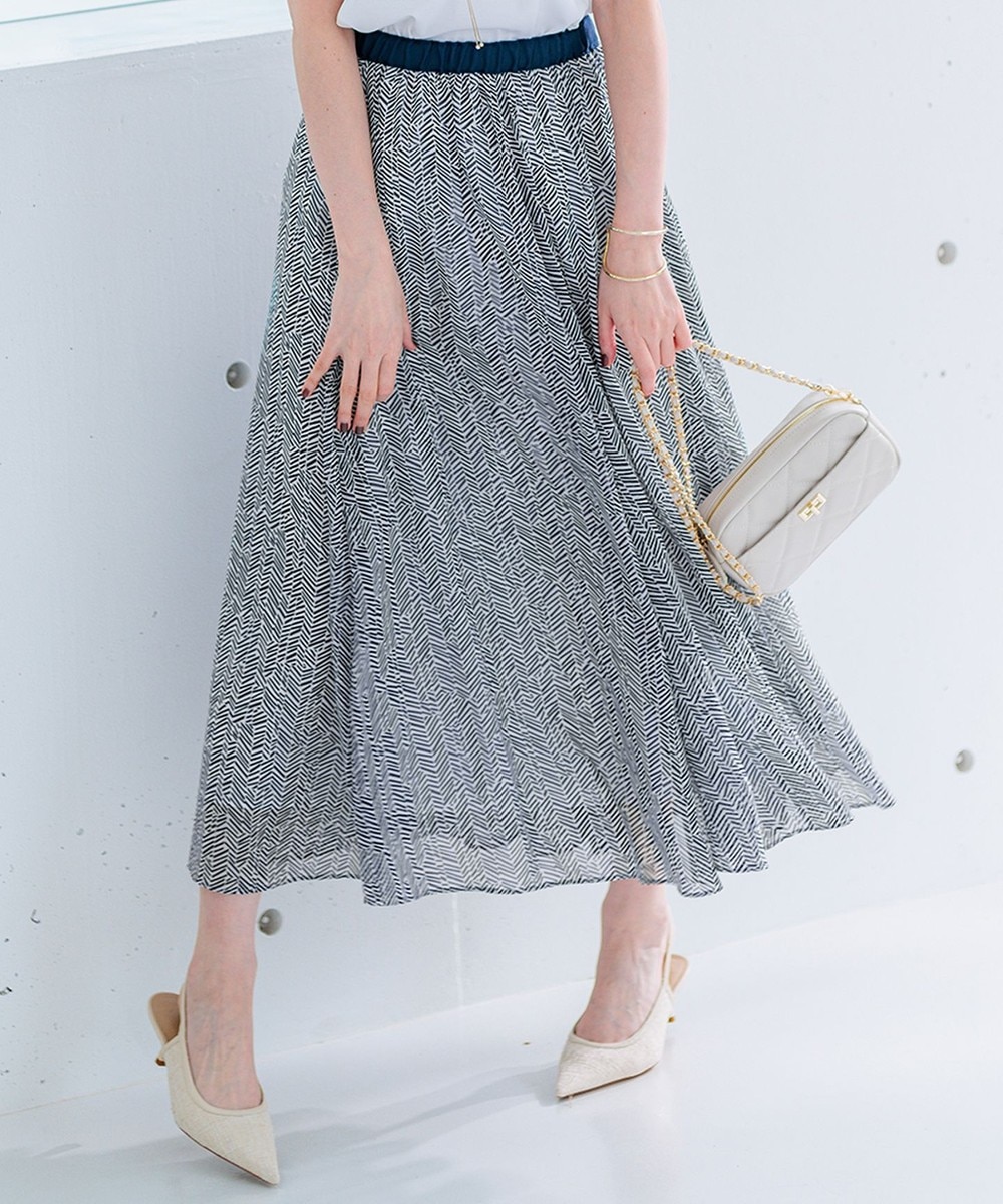 下画像は、「23区」【~5/26まで受注生産】アーカイブプリント スカートです(スカート丈38/Mサイズ相当で82.0㎝です)。上画像のブラウスとセットでお召し頂けます。