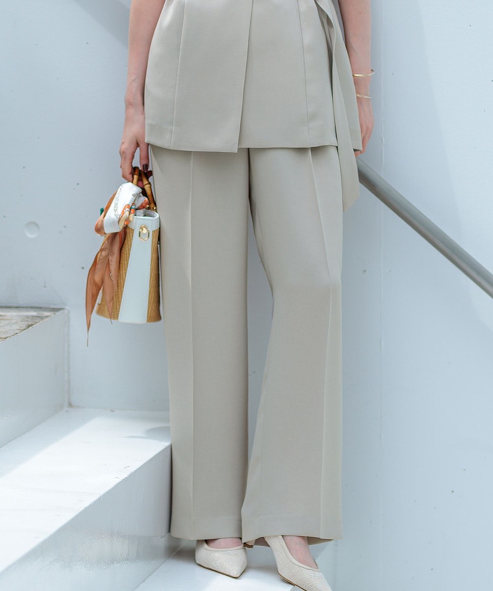 下画像は、落ち感があってシルエットがキレイな「UNFILO(アンフィーロ)」【VERY×UNFILOコラボ】 BEAUTY MOVE タックワイドパンツです。同じパンツアイテムでも、上画像のパンツよりエレガントです。
