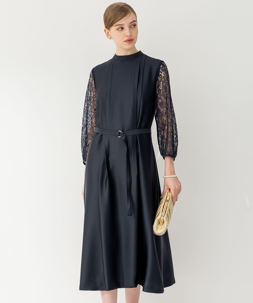 下画像は、軽やかなレース袖デザインが印象的な「23区」【APPLAUDIR】ノーブルサテン レースコンビドレスです。ワンピース丈Mサイズで117.0㎝です。