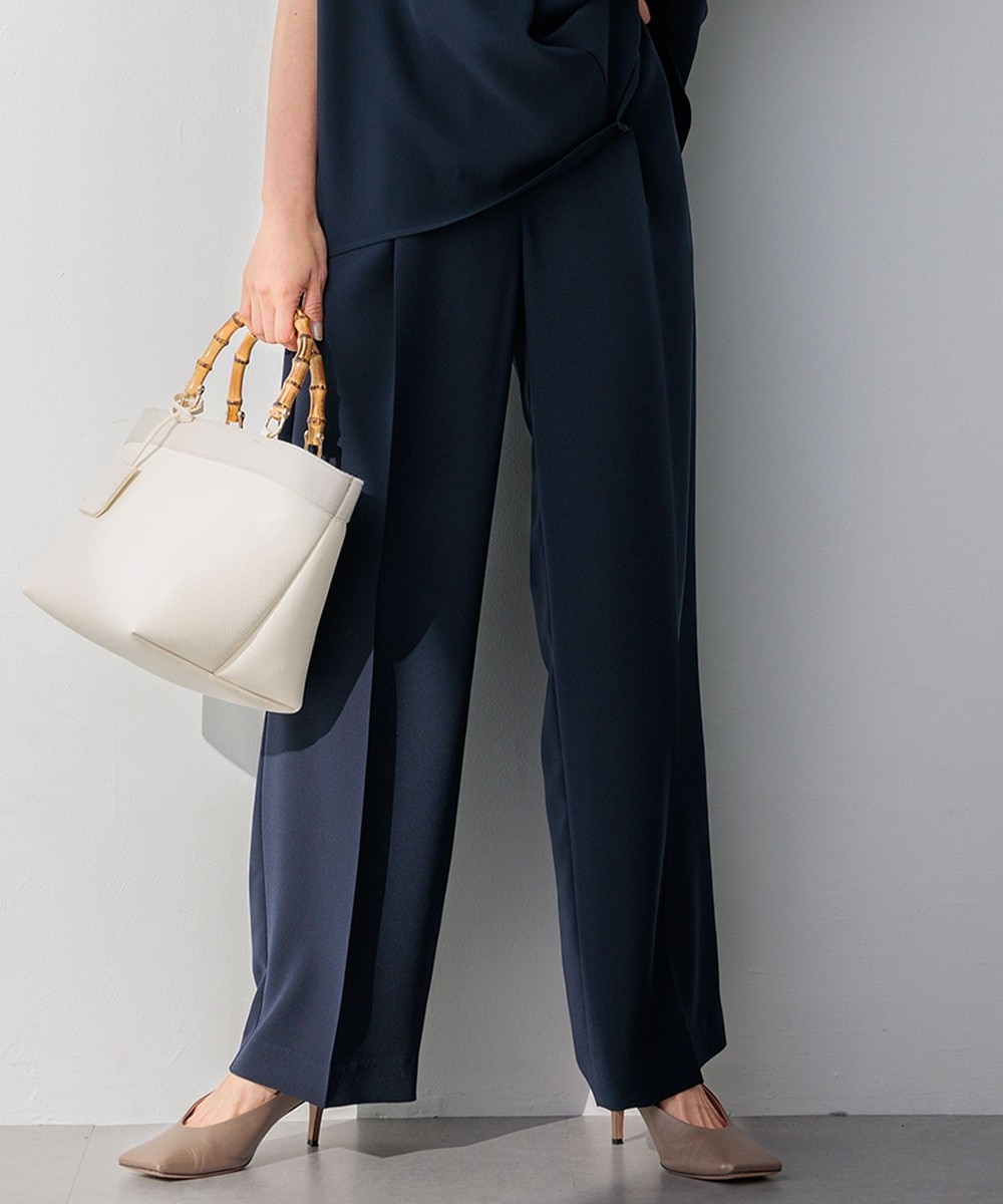 下画像は、横に広がらずストンと下に流れるシルエットで脚のラインがキレイに見える「23区」【先行予約/撥水加工】キューティクルストレッチツイル ワイドパンツです。