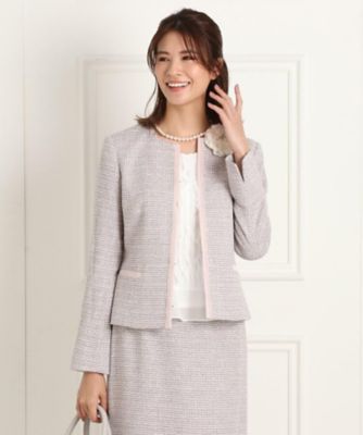 ノーカラージャケットとドレスの装いは、柔らかい印象与えるので優しく上品なイメージになります。