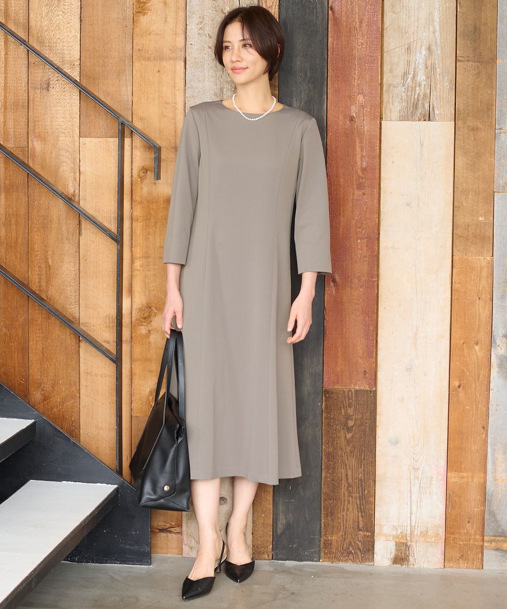 下画像は、裾に向かって程よくフレアなシルエットが大人っぽい「自由区」【セットアップ対応・洗える】モクロディ ワンピースです。