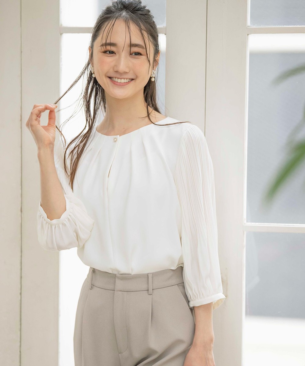 下画像は、袖のプリーツデザインがエレガントな「any SiS」【洗える】プリーツスリーブ ブラウスです。