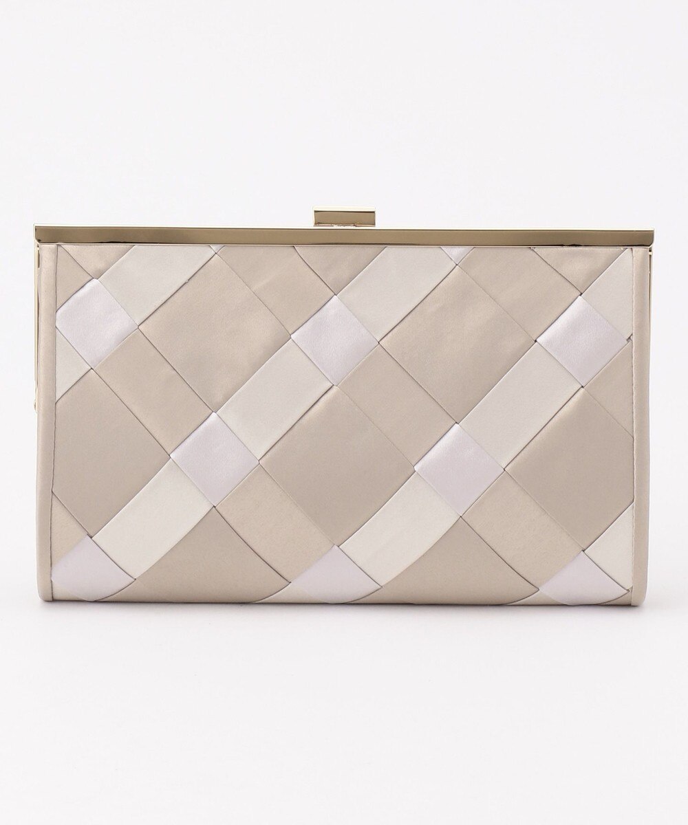 下画像はビジューボールにスワロフスキーを使用した「23区」のロングパールネックレスと、色の異なるサテンを同系色で華やかに組み合わせた「23区」のパーティーバッグです。