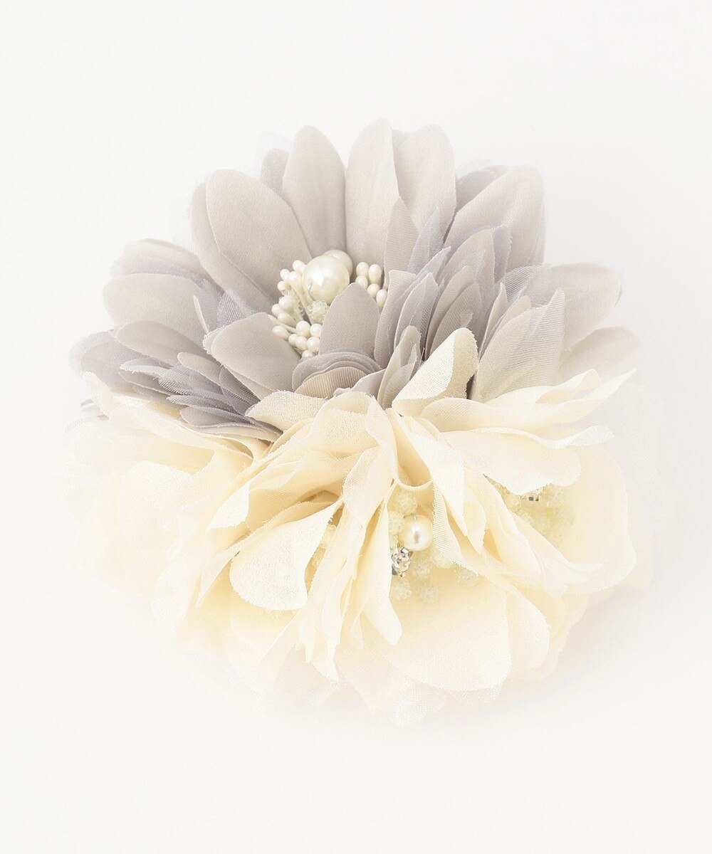下画像はグラデーションカラーがブーケ―ような雰囲気の「any FAM」のコサージュと、コットンパールと繊細なチェーンがオシャレな「組曲」のロングネックレスです。