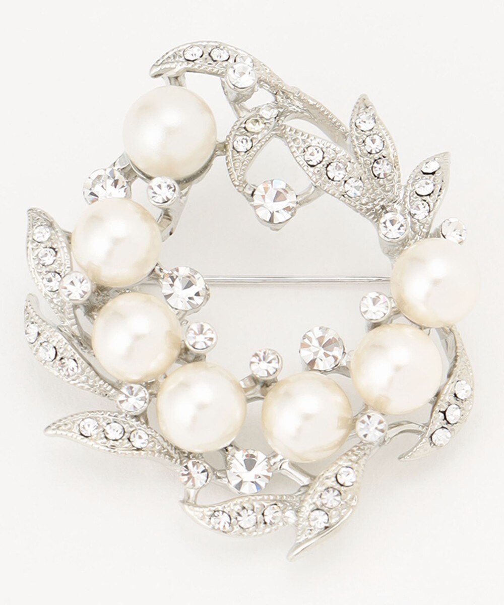 下画像はコットンパールとビジュー調パーツをあしらったリースモチーフがオシャレな「組曲」のパールブローチと、シンプルで使い勝手のよい「any SiS」のトートバッグです。