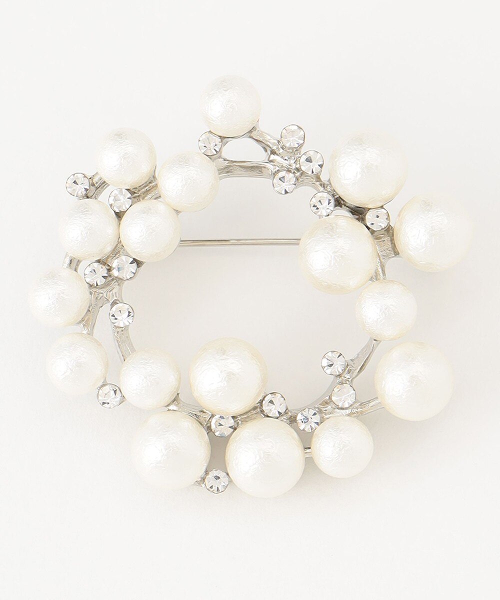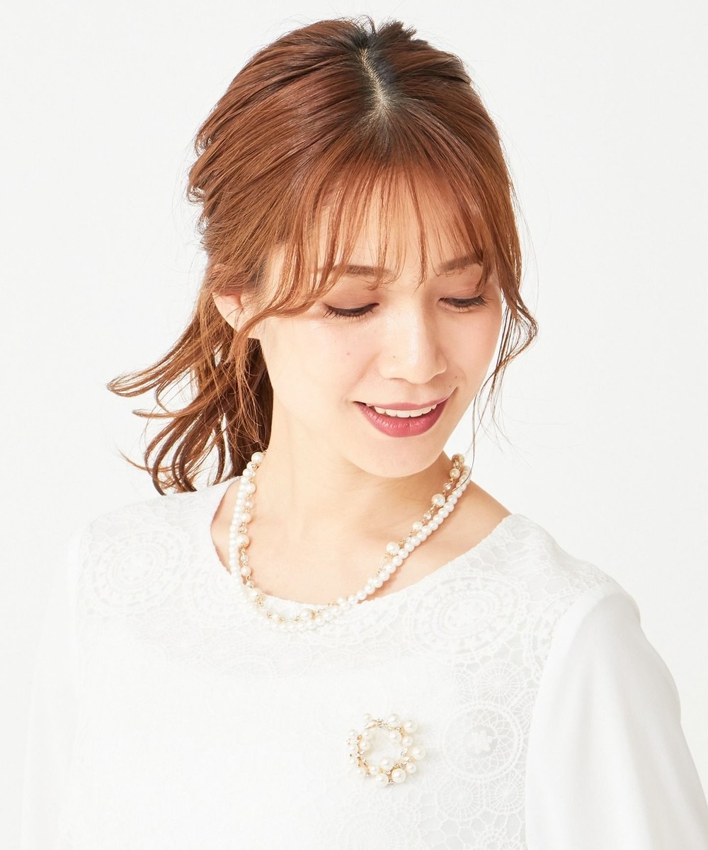 下画像は、レースとオーガンジーを組み合わせた「any SiS」のツインレースフラワーコサージュと2連のパールデザインがエレガントな「any SiS」のパール調2連ネックレスです。