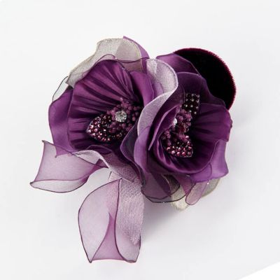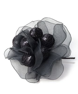 下画像は、シックで華やかな「東京ソワール」のコサージュとシフォン×スパンコールボールが華やかな「レリアン」のコサージュです。