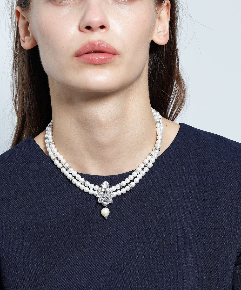下画像は、「自由区」の2連パールネックレスと「23区/アプロディール」のビーズスケールパーティーバッグです。
