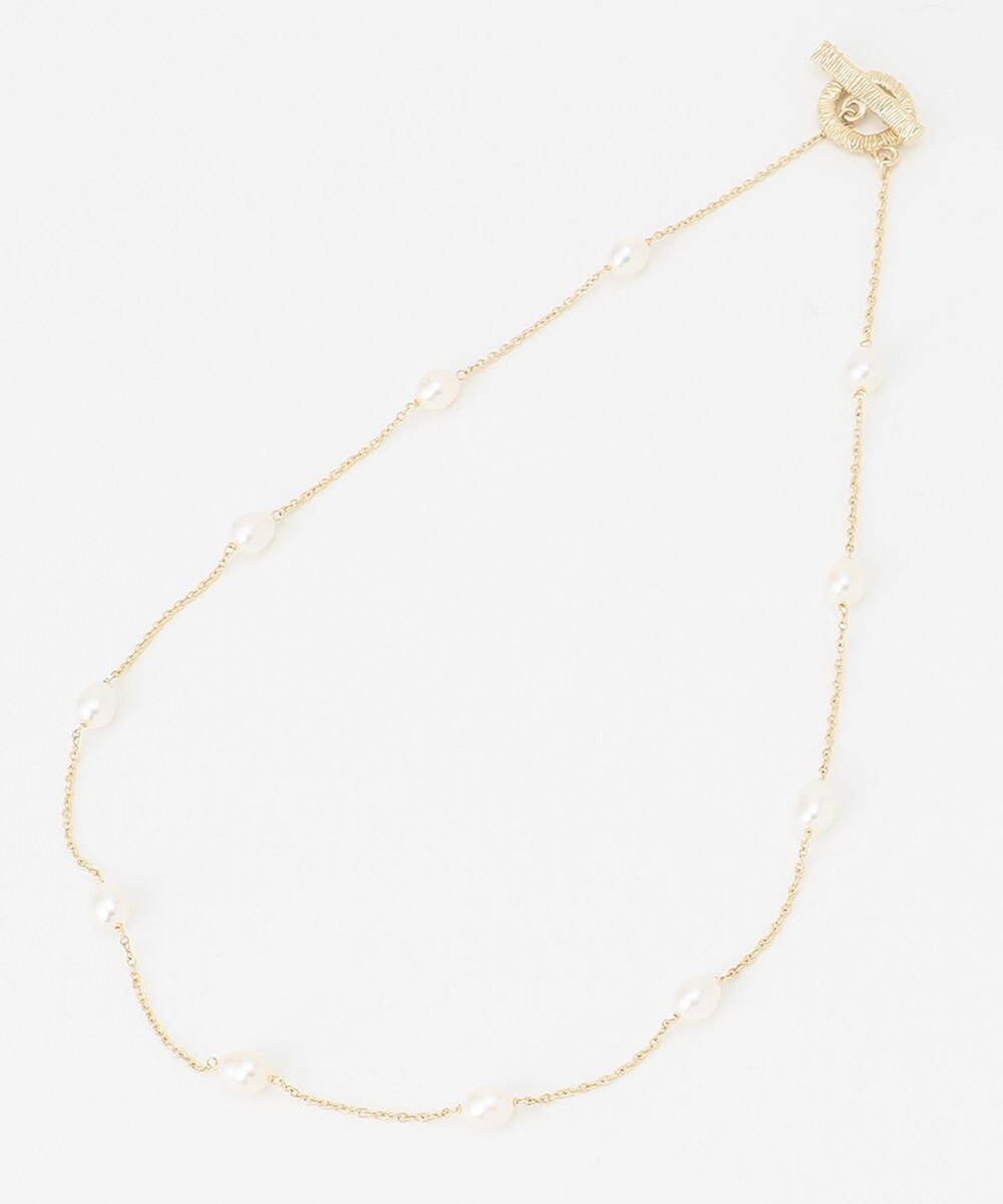 下画像は、上質な質感と光沢感が美しい「any SiS」のロンデルロングパール調ネックレスと「23区」のレースシフォンストールです。