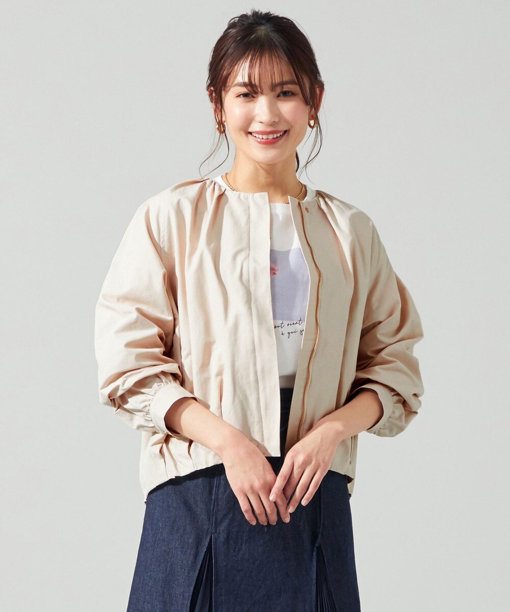 下画像は、「Feroux(フェルゥ)」のノーカラーギャザーブルゾンです。
