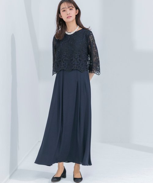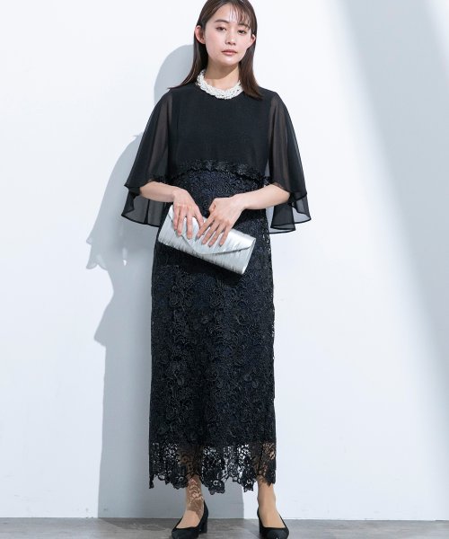 下画像は、ケープ風の袖とレースが上品な「ノン・プレステージ」のロングドレスです。
