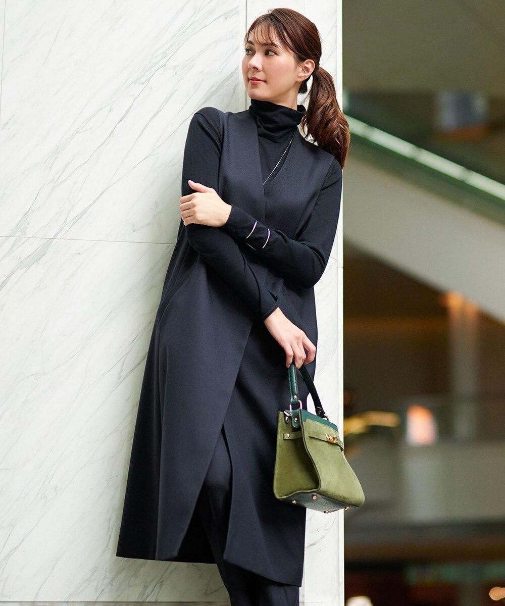 下画像は、「23区」の【CLASSY.1月号掲載】ウールライクカルゼロングジレです。Iラインシルエットのロングジレと合わせると、スッキリシャープにまとまります。