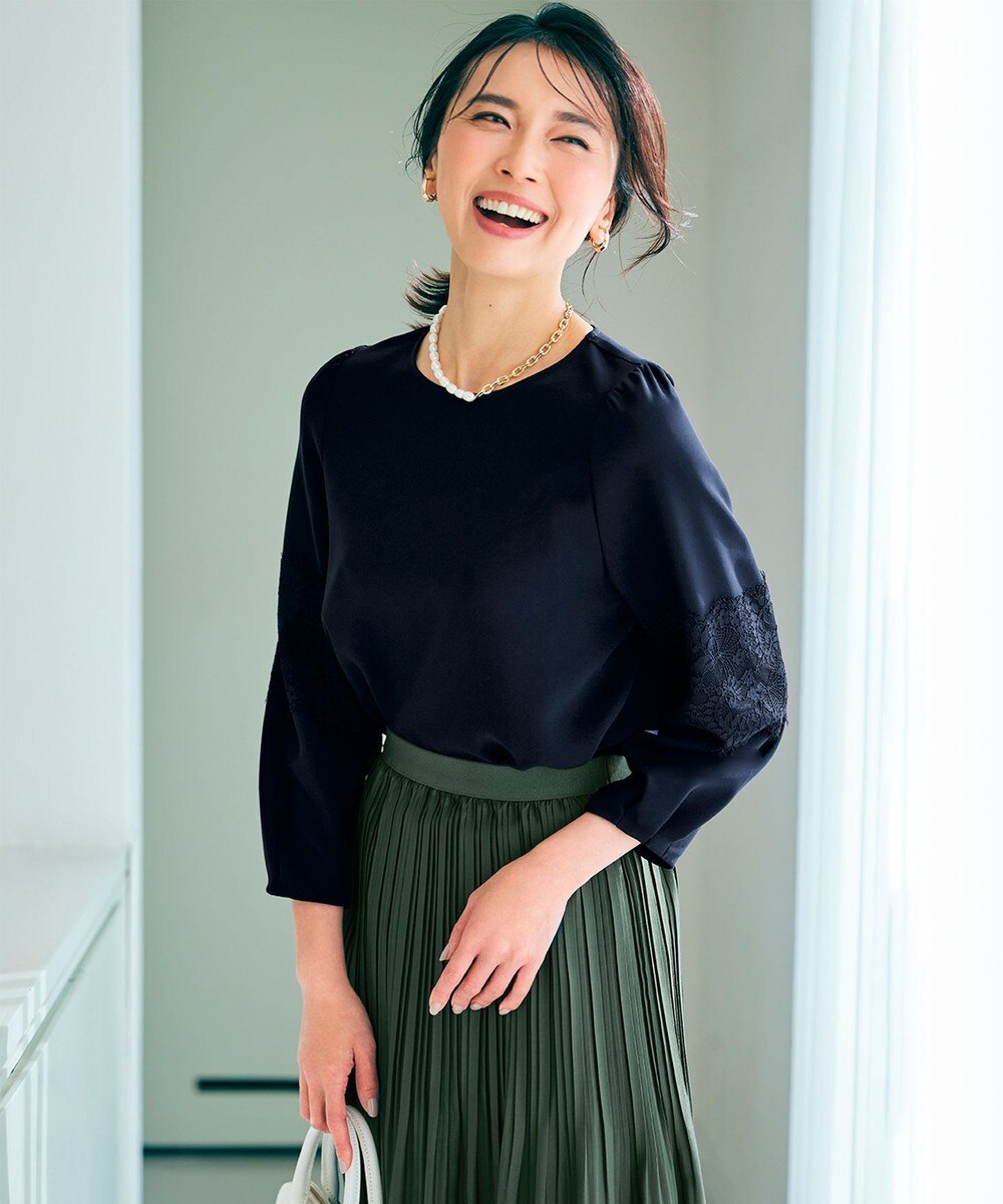 「組曲」【VERY掲載・NAVY】コンフォートダブルサテンブラウスは単品ですので、パンツやスカートと合わせて「セレモニー」にお召しいただいたりキレイな色のパンツやプリントのスカートを合わせて通勤カジュアルとしてお召しいただいたりできます。