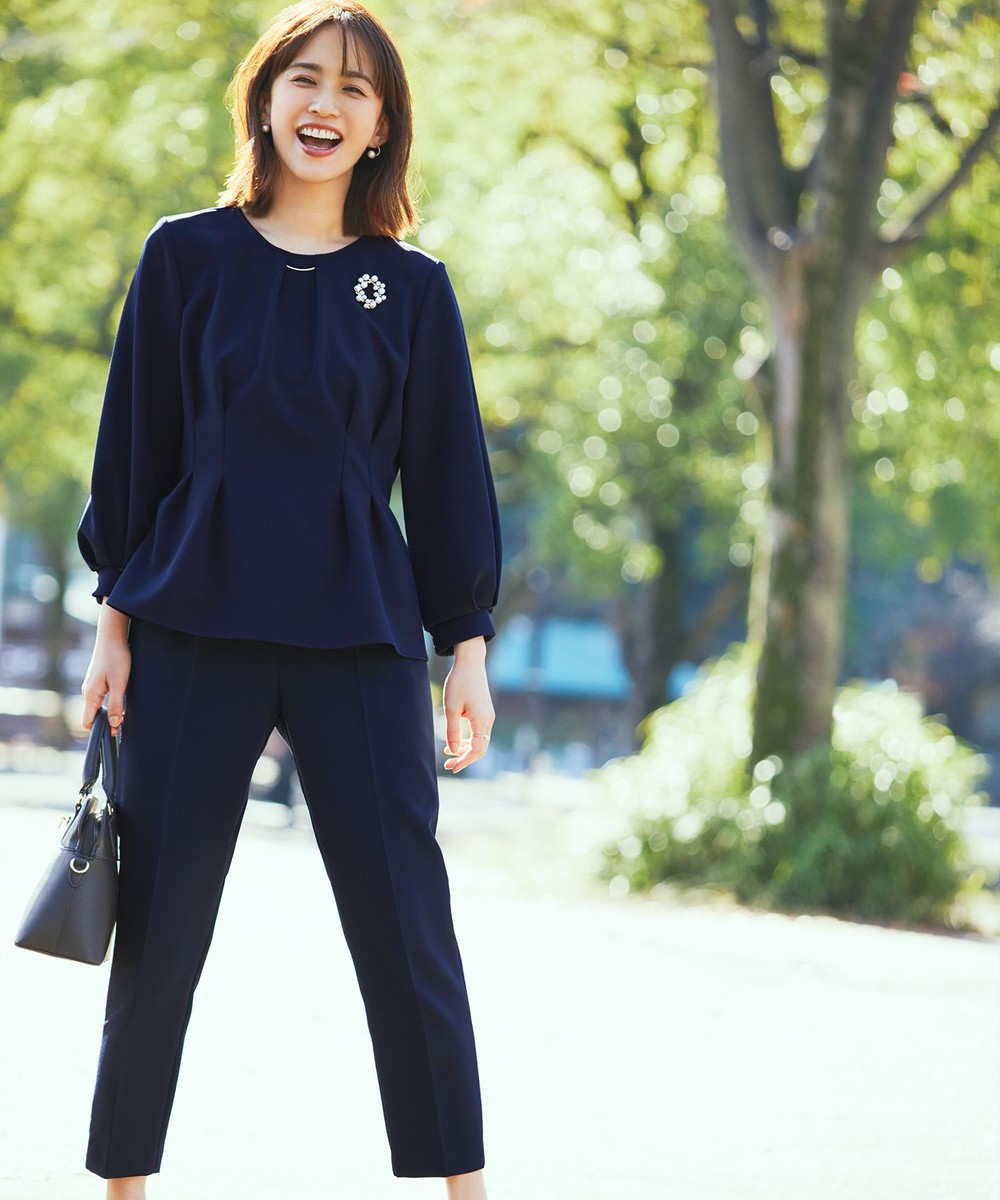 「組曲」【VERY掲載・NAVY】コンフォーダブルサテンブラウスは、卒業式や入学式にパンツやスカートを組み合わせてセレモニースーツとしてお召しいただけます。ではどのような点に注意をすれば、セレモニーに安心して着用できるのでしょうか。