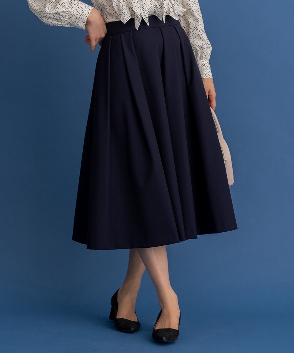 下画像が、「組曲」【NAVY】ダブルクロスストレッチスカートです。タック位置をランダムにすることで裾が不規則に動くように仕立てた、美シルエットのスカートです。