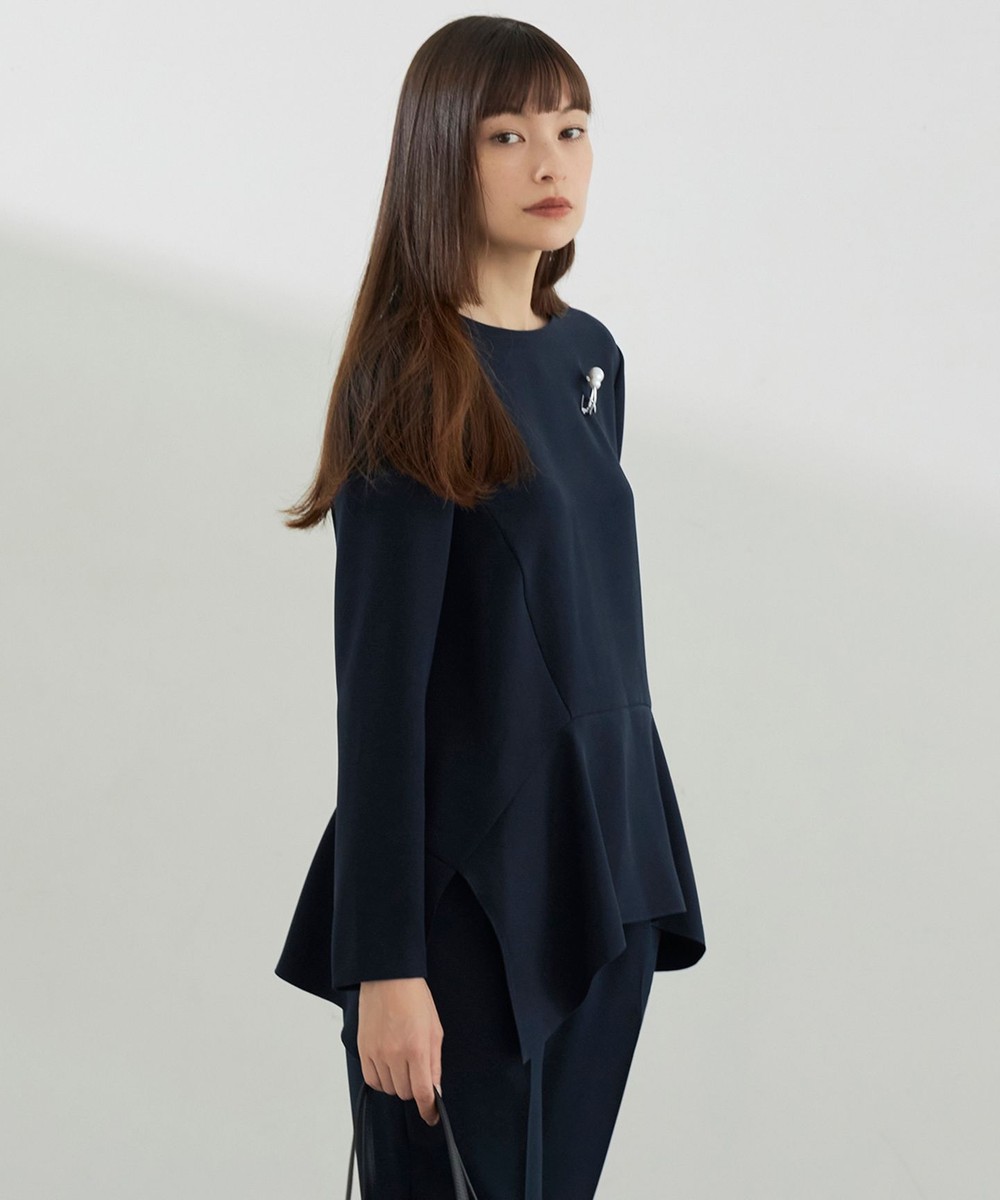 こちらのブラウスとも迷ったのですが、丈の短いジャケットと合わせたときのバランスを考えて「ライトダブルクロス ペプラムブラウス」にしました。