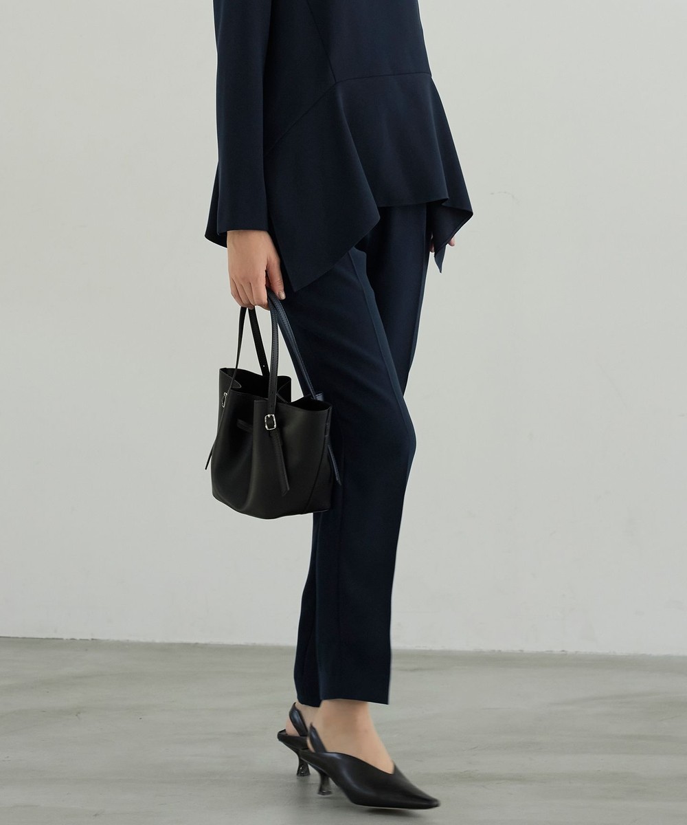 下画像は、上画像の「ICB」「 ICB(アイシービー)」【洗える】ライトダブルクロス ペプラムブラウス とセットでお召しいただける【洗える】 ライトダブルクロス ドロストパンツです。
